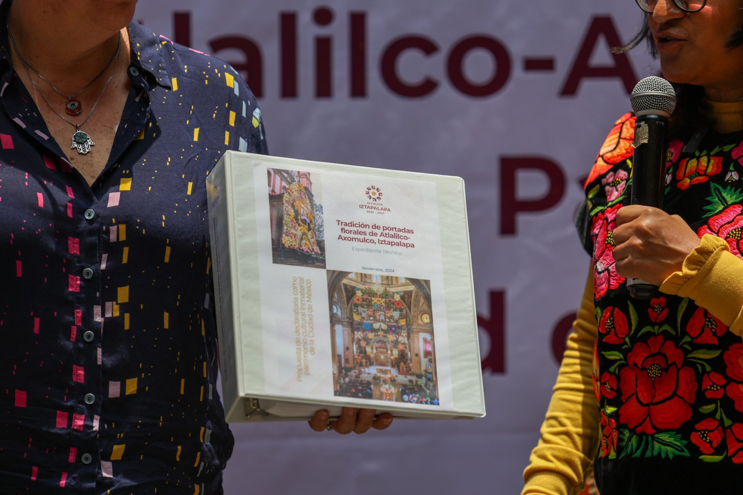 Durante el acto protocolario, la Alcaldesa de Iztapalapa, Aleida Alavez Ruiz, acompañada por representantes de las sociedades florales participantes, destacó que esta Declaratoria es un reconocimiento al trabajo artesanal, de comunión, identidad, de lo simbólico y religioso que se conjugan en la tradición de las portadas florales. «Este reconocimiento es un acto de justicia que honra una forma de vida donde el arte, la comunidad y la devoción se entrelazan como las propias vías de las portadas. Es reconocer que estos umbrales son parte esencial de la identidad de Ixtapalapa y del tejido cultural de la ciudad», aseguró en su intervención.