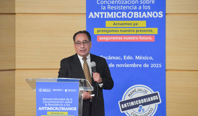 Ciudad de México, 25 de noviembre de 2025.-La Secretaría de Agricultura y Desarrollo Rural (AGRICULTURA), a través del Servicio Nacional de Sanidad, Inocuidad y Calidad Agroalimentaria (Senasica), hizo un llamado al sector productivo y a la población en general a sumarse a los esfuerzos mundiales para desalentar el uso indiscriminado de medicamentos antibióticos, antivirales, antifúngicos y antiparasitarios, con el fin de evitar la Resistencia a los Antimicrobianos (RAM).