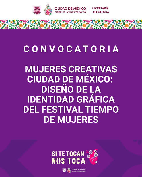 En el marco de las conmemoraciones del 25N y los 16 Días de Activismo en contra de la Violencia de Género, la Secretaría de Cultura capitalina invita a participar en la convocatoria “Mujeres Creativas Ciudad de México: Diseño de la Identidad Gráfica del Festival Tiempo de Mujeres”, dirigida a mujeres diseñadoras, artistas visuales y creadoras gráficas que deseen formar parte de la edición 2026 de este espacio de encuentro a través de la creación de una identidad gráfica que proyecte los valores y la esencia del mismo.