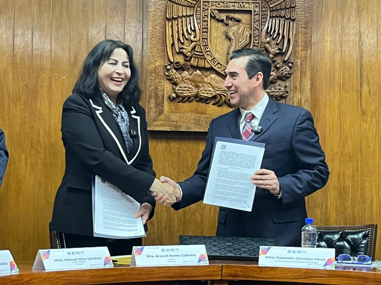 La Secretaría de Agricultura y Desarrollo Rural de Hidalgo (Saderh) firmó un convenio de colaboración con la Facultad de Estudios Superiores (FES) Aragón de la Universidad Nacional Autónoma de México (UNAM), en un acto encabezado por el secretario Napoleón González Pérez y la directora del campus, Araceli Romo Cabrera.