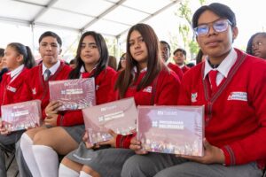 “Gracias por creer en la juventud hidalguense”, expresó Fátima Cerón López, alumna del Colegio Nacional de Educación Profesional Técnica (Conalep) plantel Pachuca, quien reconoció el apoyo brindado por el gobierno estatal a través de la entrega de uniformes, útiles escolares, becas, dispositivos móviles, así como la instalación de laboratorios, lo cual representa confianza en que las y los jóvenes pueden construir un Hidalgo más innovador.
