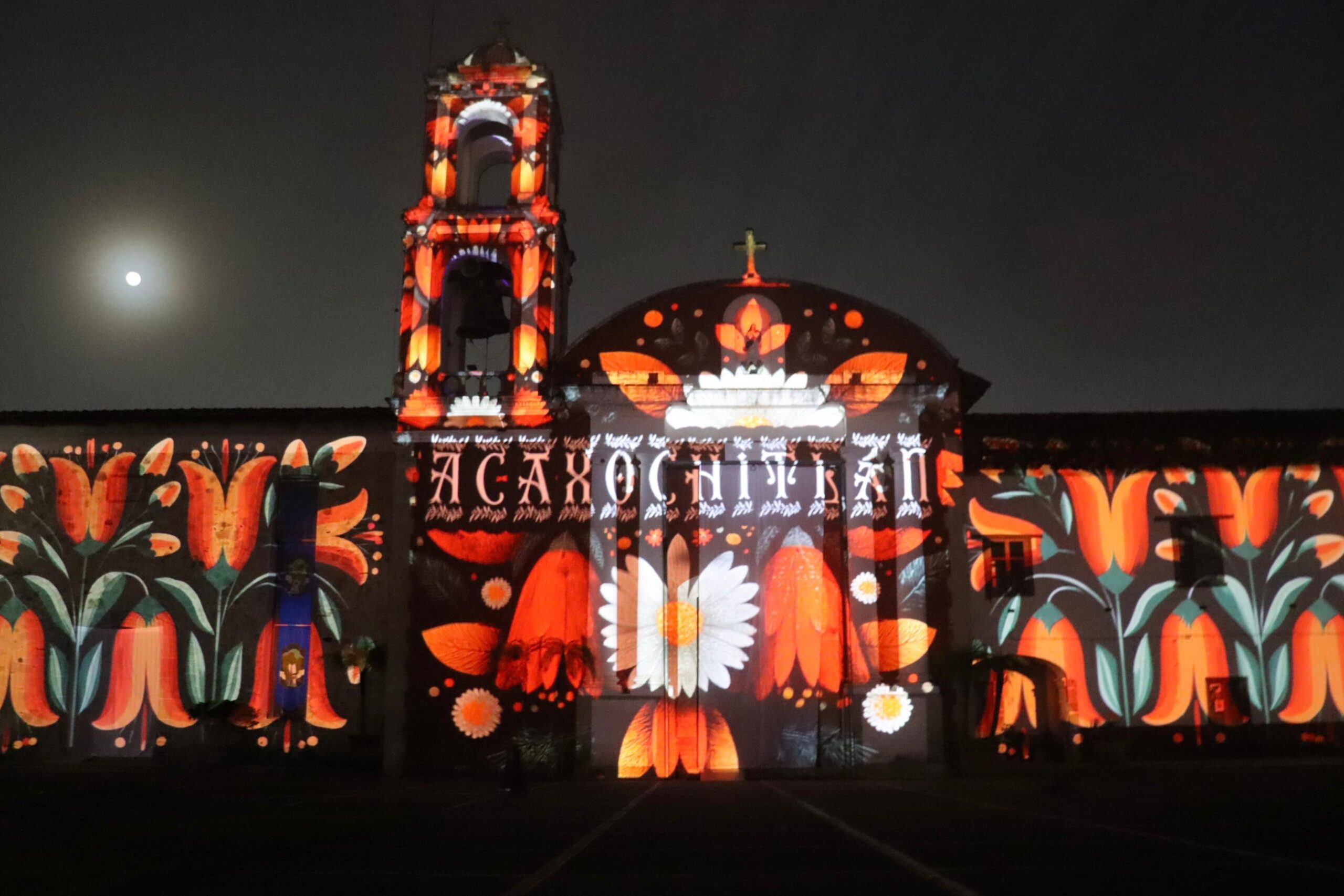 Por primera vez en este municipio, la técnica del videomapping convirtió la arquitectura en un escenario dinámico donde arte, tecnología y memoria se fusionaron para envolver al público en una experiencia sensorial que reafirma el orgullo por las raíces acaxochitlenses.