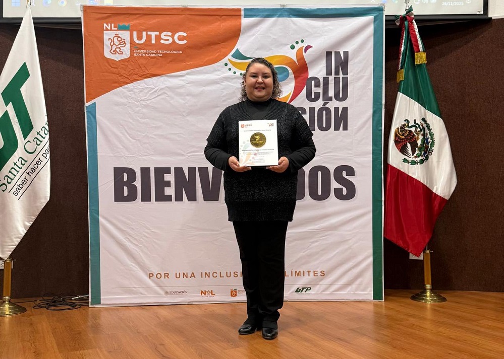 En representación del rector Leoncio Marañón Priego, la responsable de la coordinación del Programa de Educación Superior Incluyente, Esbeidy Pérez Aguilar, recibió el distintivo, que reafirma el compromiso de la UTVM con la construcción de espacios educativos accesibles para todos, con especial atención a grupos prioritarios.