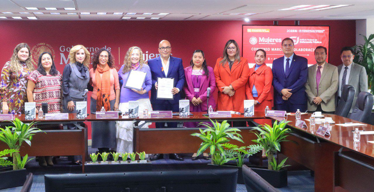 Ciudad de México, 11 de diciembre de 2025.- Con el compromiso de fortalecer la protección de los derechos humanos y garantizar el acceso efectivo a la justicia, la Secretaría de las Mujeres y director del Instituto Federal de Defensoría Pública (IFDP), Benjamin Rubio Chavez, firmaron un Convenio Marco de Colaboración orientado a robustecer los deberes reforzados del Estado mexicano en favor de mujeres, adolescentes, niñas y niños que enfrentan contextos de violencia o se encuentran en situaciones de vulnerabilidad.