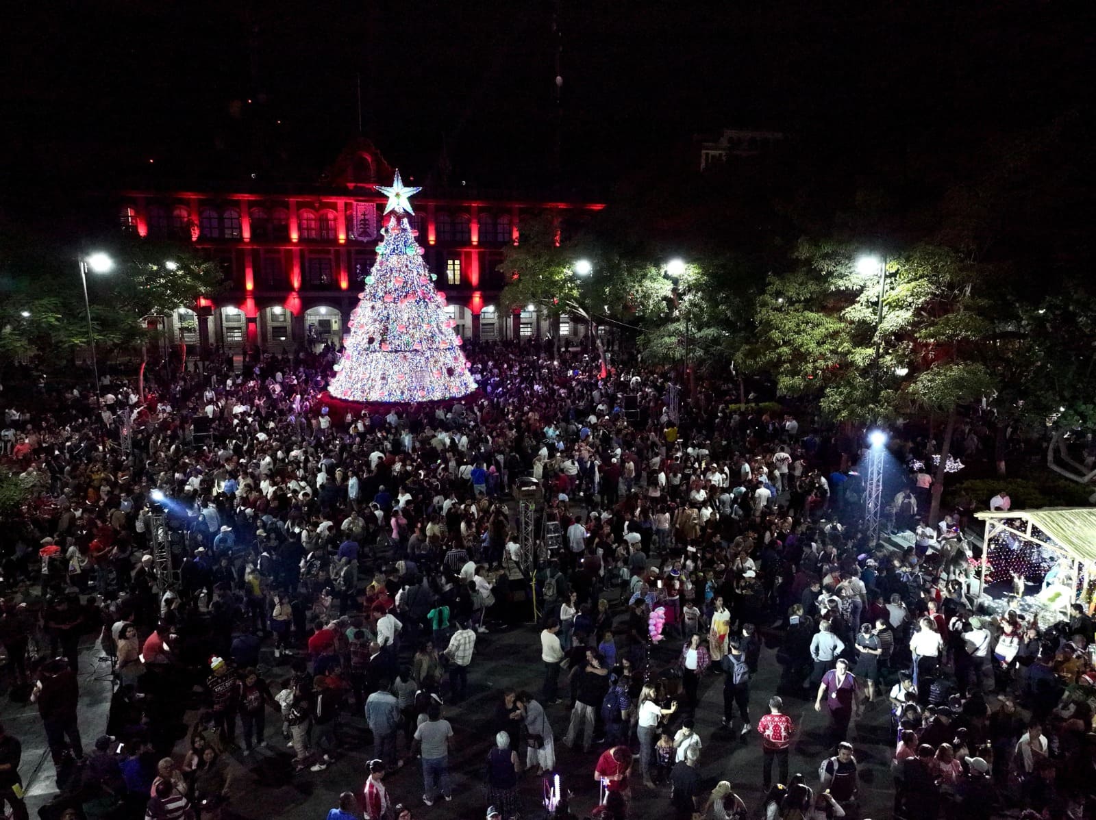 Ciudad de México 16 de diciembre de 2025.-En el marco de la dignificación de la Plaza General Emiliano Zapata Salazar, ubicada en el centro de la ciudad de Cuernavaca, la gobernadora Margarita González Saravia encabezó el encendido del tradicional árbol de Navidad, acto con el que inició el Festival Nochebuena, Flor de Encuentros.