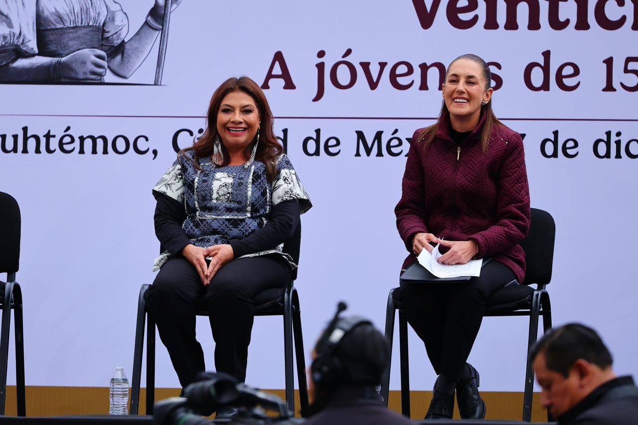 Ciudad de México, 18 de diciembre de 2025.-“Las letras en manos de nuestros jóvenes son una herramienta de construcción de paz”, afirmó la Jefa de Gobierno de la Ciudad de México, Clara Brugada Molina, al acompañar a la presidenta de México, Claudia Sheinbaum Pardo, en la entrega gratuita de libros para jóvenes, como parte de la iniciativa “25 para el 25”, impulsada por el Gobierno de México y el Fondo de Cultura Económica.
