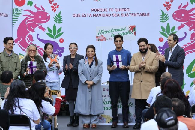 Ciudad de México 19 de diciembre de 2025.-La Jefa de Gobierno de la Ciudad de México, Clara Brugada Molina, convocó a las y los capitalinos a sumarse a la iniciativa “Porque te quiero, que esta Navidad sea sustentable”, que consiste en entregar y recibir regalos envueltos en papel reciclado y reducir la producción de residuos, en el marco de estas fiestas decembrinas.