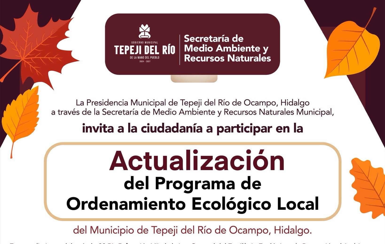 Tepeji del Río invita a la ciudadanía a participar en La Consulta Pública del Programa de Ordenamiento Ecológico Local