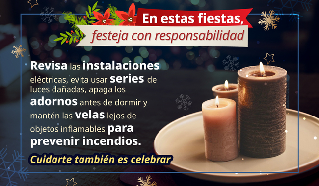 - Si pones arbolito de Navidad coloca uno que no sea inflamable, ubícalo lejos de cortinas y sillones y apaga sus luces cuando vayas a dormir o salgas de tu casa.