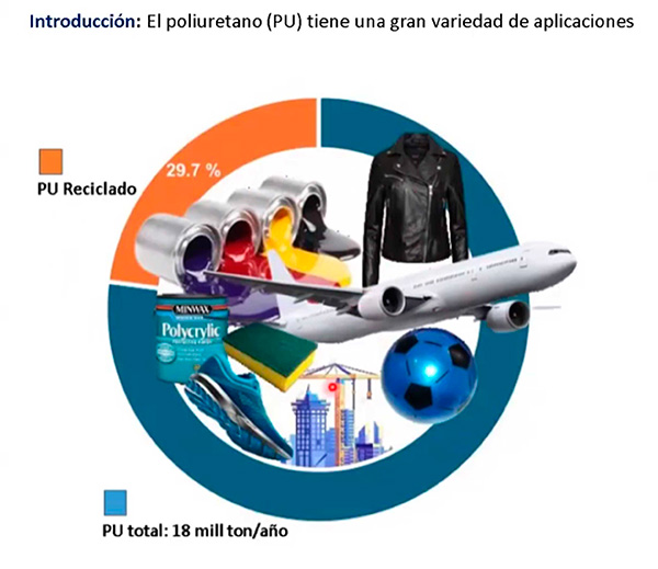 Pardo López destacó que cada año se fabrican 18 millones de toneladas de poliuretano y solo 29.7 por ciento se recicla; es decir, 70 por ciento restante termina como un residuo en el ambiente.