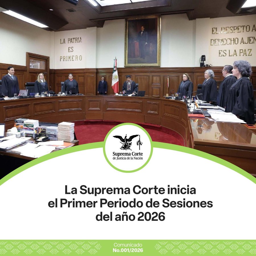 Ciudad de México 06 de enero de 2026.- La Suprema Corte de Justicia de la Nación (SCJN) inauguró el Primer Periodo de Sesiones, correspondiente al año 2026, con lo que reanudó formalmente sus actividades jurisdiccionales.