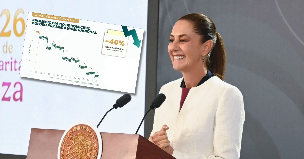 Homicidios dolosos disminuyen 40% de septiembre de 2024 a diciembre de 2025; representan 34 homicidios diarios menos: Presidenta