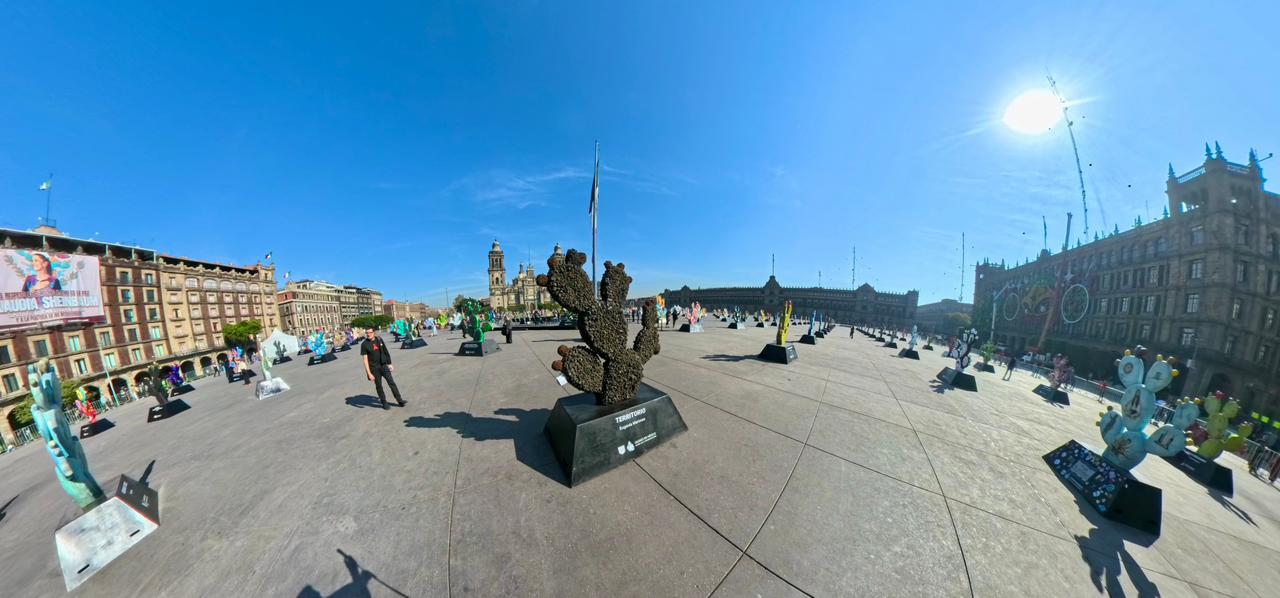 En el Zócalo Capitalino, inauguró Clara Brugada exposición de 200 Obras Artísticas en Homenaje al Nopal, símbolo de Identidad y Soberanía Nacional.