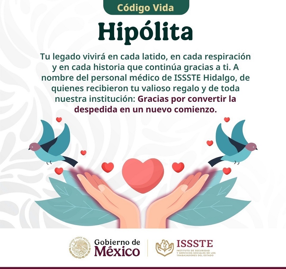Pachuca de Soto, Hidalgo, a 15 de enero de 2026.- El Hospital General (HG) “Dra. Columba Rivera Osorio” en Pachuca, Hidalgo, adscrito al Instituto de Seguridad y Servicios Sociales de los Trabajadores del Estado (ISSSTE), a cargo del director general Martí Batres Guadarrama, registró la primera donación de tejido del 2026, gracias a la generosidad de una derechohabiente, cuya voluntad fue dar a otras personas una segunda oportunidad de vida.