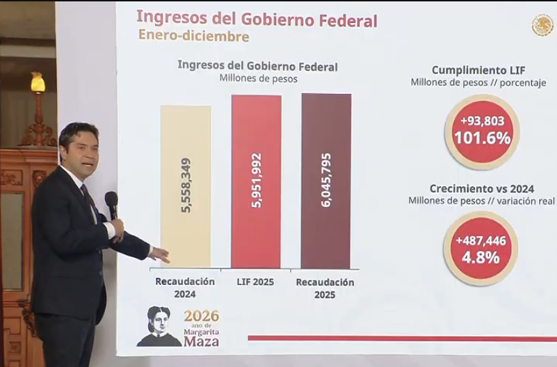 En el marco de la conferencia matutina de la presidenta Claudia Sheinbaum, este lunes 19 de enero de 2026, el titular del Servicio de Administración Tributaria, Antonio Martínez Dagnino, dio a conocer los resultados de la recaudación de ingresos correspondiente al ejercicio fiscal 2025.