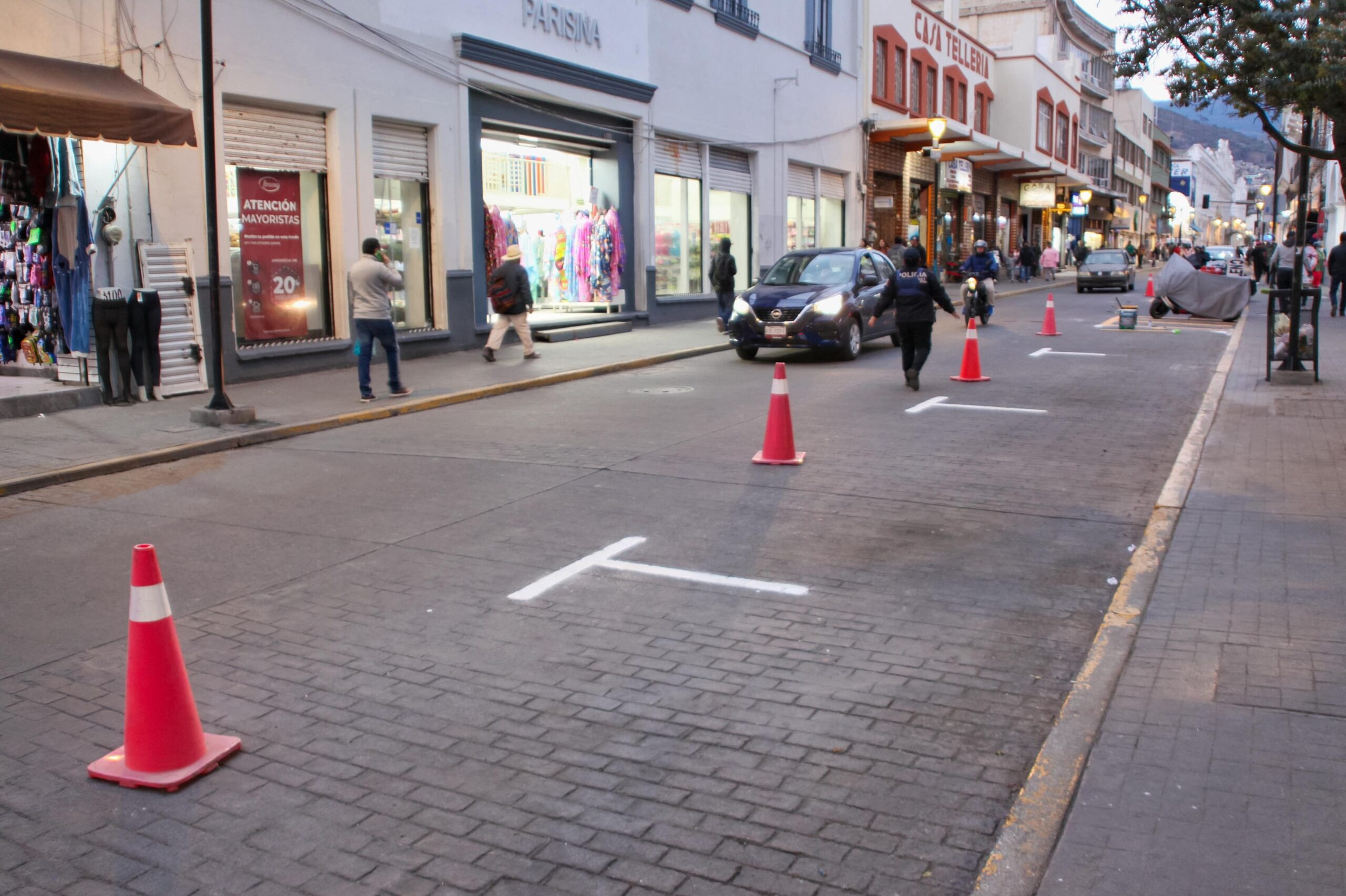 Como parte de la primera etapa de intervención, se realizaron trabajos en la calle Guerrero, en el tramo comprendido entre C. Doria y Guadalupe Victoria, donde se efectuó el marcaje de 22 cajones de estacionamiento para vehículos particulares, tres espacios destinados a personas con discapacidad y nueve cajones para motocicletas.