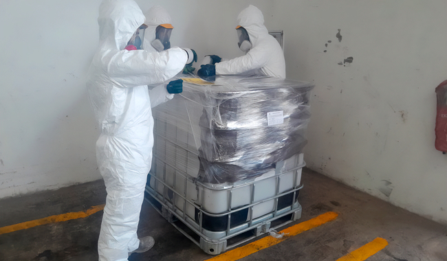 Semarnat y Profepa confinan 644 kg de mercurio líquido, tras ser asegurados en el Puerto de Manzanillo