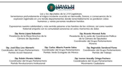 Diputadas y diputados de la LXVI Legislatura, lamentan profundamente el trágico incidente ocurrido en Hermosillo, Sonora.