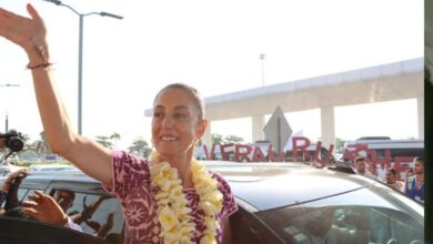 Claudia Sheinbaum aterriza en Veracruz: «Que siga la Cuarta Transformación y que vivan las mujeres”