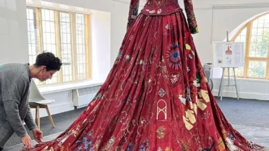 Londres, 01 de junio del 2024. El vestido rojo, una creación colectiva de 380 artistas de 51 países, y salida…