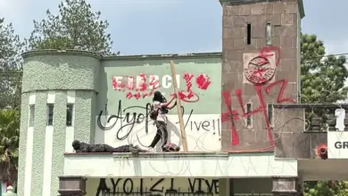Los manifestantes realizaron pintas en las paredes del inmueble y lanzaron petardos al interior. Ciudad de México, 25 de septiembre…