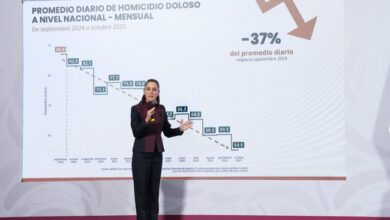 Disminuyen 37% los homicidios dolosos de septiembre de 2024 a octubre de 2025; representa 32 homicidios menos diarios: Presidenta