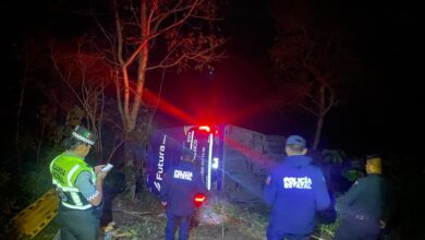 Autoridades estatales y federales atienden accidente de autobús en la carretera México–Tampico, en el municipio de Tlanchinol.