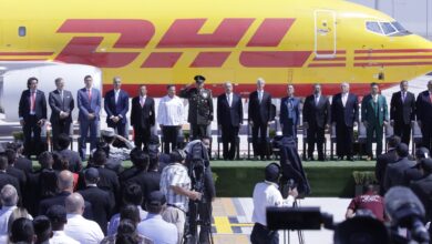 Julio Menchaca Salazar, presenció aterrizaje del primer avión de carga de la empresa DHL en el AIFA