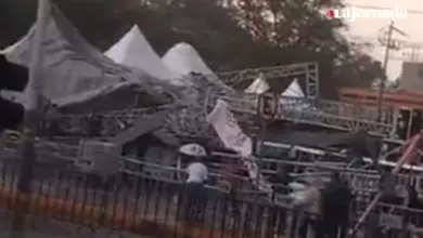 Ciudad de México, 08 de mayo de 2025.- La estructura metálica que sostendría la luces y sonido para el evento por…