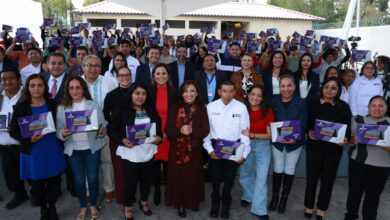 Tlaxcala 18 de diciembre de 2025.-La gobernadora Lorena Cuéllar Cisneros encabezó la entrega de 100 tabletas electrónicas a asesores educativos voluntarios del…