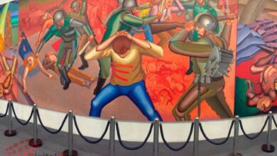 Tlatelolco, ‘lugar del sacrificio’, de Arnold Belkin, capta la fragilidad humana y la unión