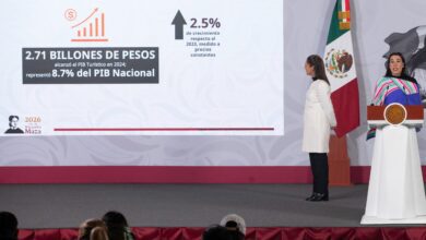 Claudia Sheinbaum destaca inicio del 2026 con ganancia del peso frente al dólar, aumento del salario e incremento del 13.6% en llegada de visitantes internacionales.