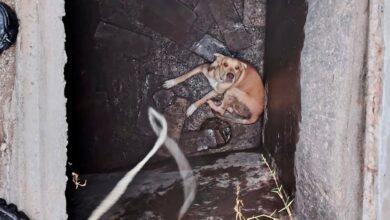 Bomberos rescatan a canino que cayó a una cisterna