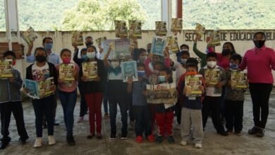 Entrega IHE la gaceta número 17 del programa Cazadores de Saberes a primaria bilingüe de Acaxochitlán
