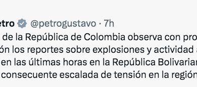 Gobierno de Colombia manifiesta preocupación por explosiones recientes en Venezuela de parte de EU.
