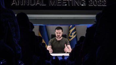 Davos, 23 de mayo del 2022.- El presidente ucranio Volodimir Zelensky pidió este lunes en el primer día del Foro Económico…