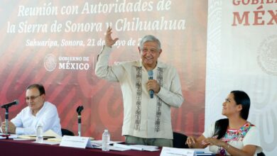 Lomas de Guamuchil, 22 de mayo del 2022.- Durante un encuentro con la comunidad Yaqui, el presidente Andrés Manuel López Obrador…
