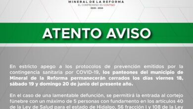 Mineral de la Reforma, Hgo., 18 de junio del 2021.- Con fundamento en la Ley de Salud para el Estado…