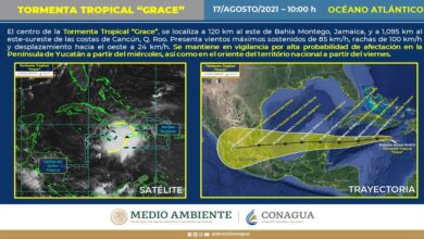 Ciudad de México, 17 de agosto del 2021. La tormenta tropical Grace podría ingresar a la península de Yucatán el miércoles, informó el…