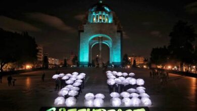Activistas de Greenpeace iluminan el Monumento a la Revolución
