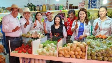 Isidro Romero junto con candidatos de la coalición Fuerza y Corazón por México fueron recibidos con entusiasmo por comerciantes de la Aquiles Serdán.