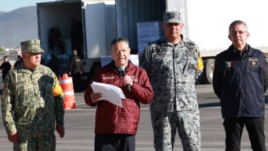 Secretaria de Gobernación y gobernador Julio Menchaca y supervisan logística de envío de víveres
