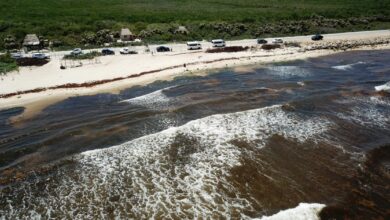 Cancún, QR., 04 de mayo del 2022.- El sargazo que flota en el mar Caribe sumó al menos 14 millones…