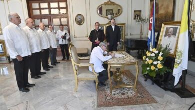 Firman el General de Ejército Raúl Castro Ruz y el Presidente Miguel Díaz-Canel Bermúdez libro de condolencias con motivo del fallecimiento del papa Francisco