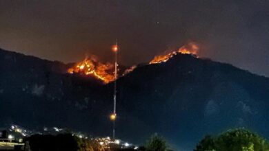 Tepoztlán, Mor., 23 de marzo del 2022.- Un incendio en la zona boscosa de los cerros La Luz y Los Corredores,…
