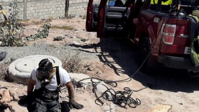 Rescatan bomberos de la SSP Hidalgo a perro que cayó al drenaje