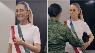Sheinbaum se prueba la banda presidencial antes de su toma de protesta: ‘Se me salen las lágrimas’
