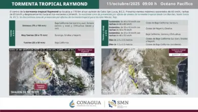 Ciudad de México, 11 de octubre del 2025.- La tormenta tropical Raymond ocasiona lluvias muy fuertes a intensas, rachas fuertes de viento y…