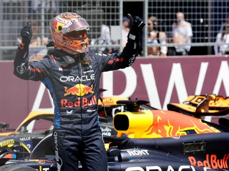 Max Verstappen celebrando. Max Verstappen celebra su triunfo en la carrera sprint del GP de Austria. Fotos: Reuters. La hegemonía de Max Verstappen en la Fórmula 1 luce interminable. El vigente campeón del mundo dio otra cátedra de conducción en la carrera sprint del Gran Premio de Austria y conquistó la cima, en una jornada en la que Sergio Pérez dio otro paso atrás, al perder una posición y quedarse relegado al octavo lugar.